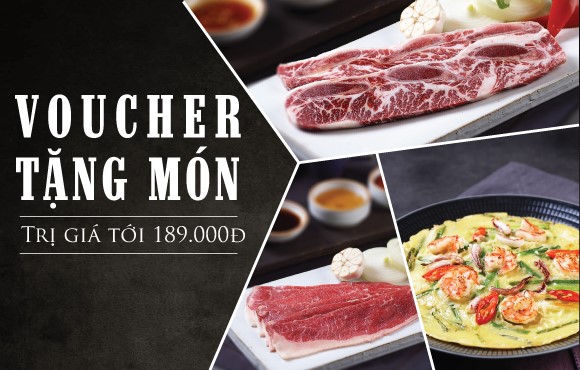 Sau khi dùng bữa tại bất kì nhà hàng King BBQ Alacarte, quý khách được tặng ngay 01 Voucher tặng món trị giá lên tới 189.000 VNĐ áp dụng cho lần sử dụng sau. Mỗi voucher có giá trị tương đương với 1 trong 3 món: Bánh hải sản Hàn Quốc, Sườn Los Angeles 100gr, Gầu bò tươi nướng 100gr.